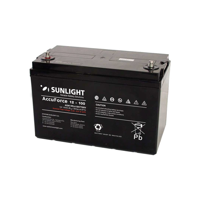 Μπαταρία Sunlight Accuforce 12-100 VRLA – AGM τεχνολογίας – 12V 100Ah (C20) με 3-5 χρόνια προσδόκιμο χρόνο ζωής , κατάλληλη για συστήματα Ups , συναγερμούς ασφαλείας , συστήματα έκτακτης παροχής ενέργειας , αυτόνομα φωτοβολταϊκά συστήματα, ηλεκτρικά παιχνίδια κ.α