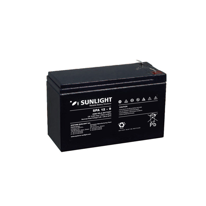 Μπαταρία Sunlight SPA12-9 VRLA – AGM τεχνολογίας – 12V 9Ah (C20) με 3-5 χρόνια προσδόκιμο χρόνο ζωής , κατάλληλη για συστήματα Ups , συναγερμούς ασφαλείας , συστήματα έκτακτης παροχής ενέργειας , ηλεκτρικά παιχνίδια κ.α .