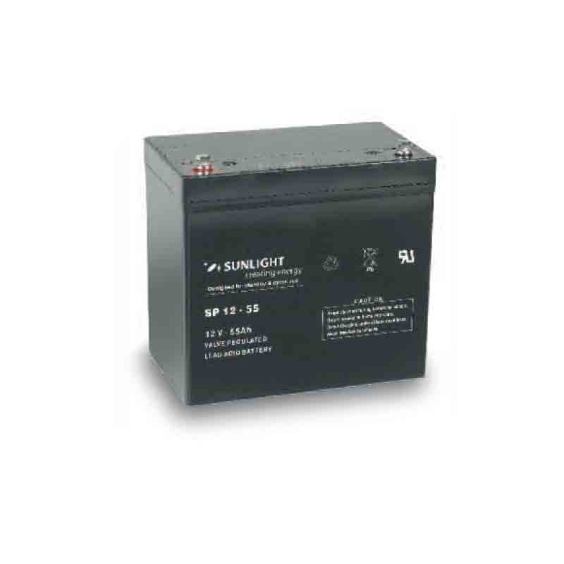 Μπαταρία Sunlight SPB12-55 VRLA – AGM τεχνολογίας – 12V 55Ah (C10) με 10-12 χρόνια προσδόκιμο χρόνο ζωής , κατάλληλη για συστήματα Ups , συναγερμούς ασφαλείας , συστήματα έκτακτης παροχής ενέργειας , ηλεκτρικά παιχνίδια , για ηλεκτρικά μοτέρ, τροχόσπιτα, φωτοβολταϊκά συστήματα, service σε σκάφη αναψυχής κ.α .